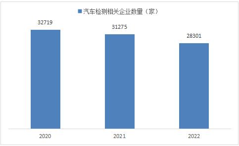 图表:2020-2022年中国汽车检测相关企业数量情况