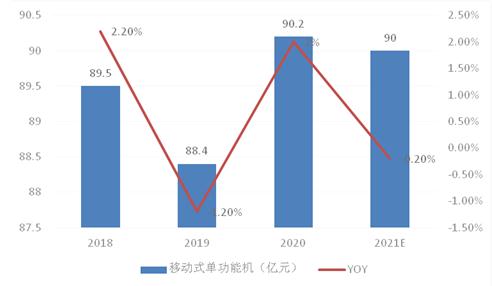 图表:2018-2021年我国移动式单功能空调市场规模及增速情况