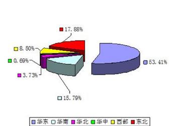 国内沥青行业主要集中在华东地区,占比为53.41%,其次是集中在东北地区,占比为17.88%,占比最少的是0.69%,在西部地区。