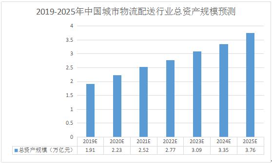 图表:2019-2025年中国城市物流配送行业总资产规模预测
