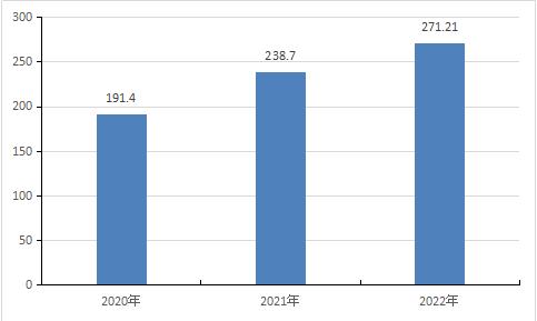 从行业规模的角度来看,2022年,行业市场规模达到271.21亿元,市场规模同比增长13.62%