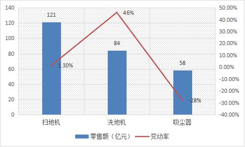 其中具体来看占据整体规模八成多的清洁电器的三大主品类——扫地机器人、洗地机、无线吸尘器。在国内,2022年清洁电器全渠道零售额约在313亿元左右,同比微增约1%,相当于和2021年持平。