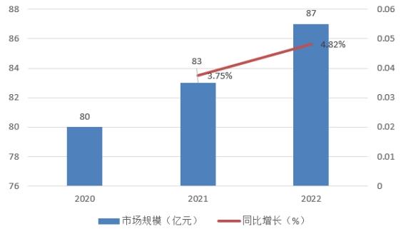 图表:2020-2022年天然电气石板行业市场规模及增速
