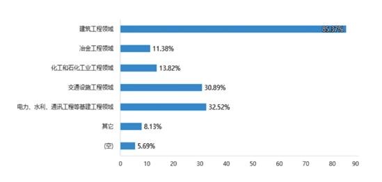 机电安装业务需求涉及领域为:侧重于建筑工程领域的占85.37%;冶金工程占11.38%;化工和石化工业工程领域占13.82%;交通设施工程占30.89%;电力、水利、通讯工程等基建工程领域为35.52%;其他占8.13%。数据显示,所涉业务建筑工程领域一马当先,近来城市建设所包含的交通设施与电力、水利、通讯工程等基建工程领域,也占有明显的份额。