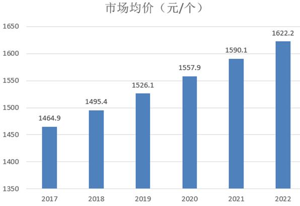 图表:2017-2022年中国市场癌症检测市场价格