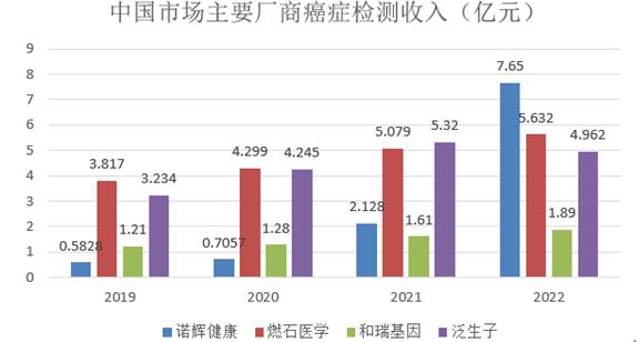 图表:2019-2022年中国市场主要厂商癌症检测收入