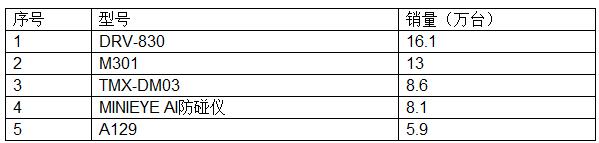 图表:西欧区域区域行车记录仪畅销型号及其销量