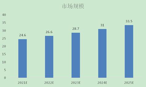 预计2021年我国户外家具行业市场规模将达到24.6亿元,到2025年将达到33.5亿元,我国户外家具市场发展空间广阔。