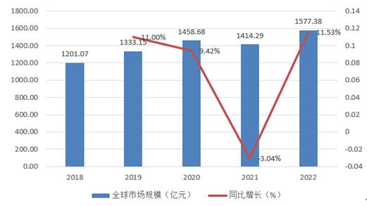 1、2018-2022年全球方便面市场规模及增速