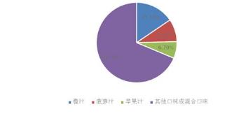 从中国果汁饮料的口味分布观察,橙汁、菠萝汁和苹果汁饮品的市场占比最高,但合计占比也仅为31.3%,说明中国果汁饮料口味分布多样,加上有混合口味果汁饮料的存在,并没有出现单一口味占据较大市场份额的现象。