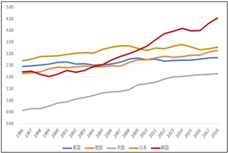 发达国家研究经费投入保持较快增长。根据世界银行的统计数据计算,美国、德国2000-2018年研究经费占GDP的比重分别提升0.2个百分点和0.72个百分点,研究经费投入年均复合增速分别为4.4%和5.6%,2018年研究经费投入分别达到5839亿美元和1245.3亿美元,分别占其GDP的比例达到2.83%和3.13%。