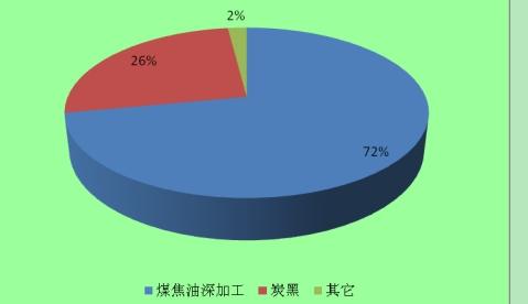 国内高温煤焦油主要用于深加工行业,占比约72%,用于生产煤沥青、工业萘、蒽油、洗油、酚油等产品;另外约26%用于碳黑行业的生产,剩余2%用于加氢及出口等其他用途。