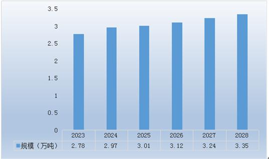 根据钢铁行业大气污染发展趋势,预计2023-2028年行业二氧化硫产量由2.96万吨上升到3.57万吨。