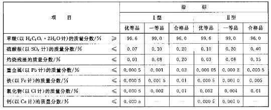 草酸质量指标