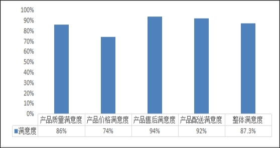 国内下游用户对国内电子信息新材料供应商的整体满意度达87%以上。其中产品质量满意度为86%、产品价格满意度为74%、产品售后服务满意度为94%,产品配送渠道满意度为92%。