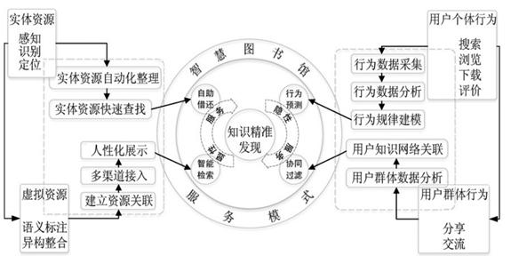 智慧图书馆对用户个体行为数据进行持续的自动化采集、存储,并对其进行分析实现处理、整合价值过滤,据此构建符合用户行为规律的模型,精准预测用户下一行为,获取用户隐性知识需求。