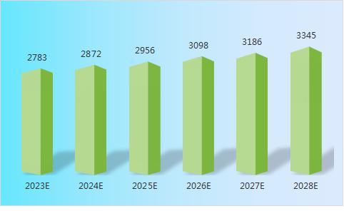 2023年汽车市场将继续呈现稳中向好发展态势,实现3%左右增长。国内疫情管控放松,有利市场主体发展,推动底层就业收入增加,支撑汽车消费。预计2023-2028年中国汽车市场产量由2783万辆上升到3345万辆。