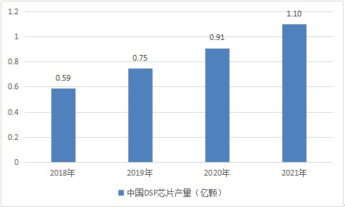 数据显示,我国DSP芯片产量只有0.59亿颗,近些年随着我国自主研发的突破,中科昊芯研发的DSP芯片在2021年将进行量产,预测2021年DSP芯片产量将达到1.1亿颗。