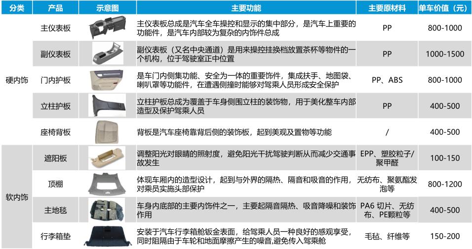 表1:汽车主要内饰件产品梳理