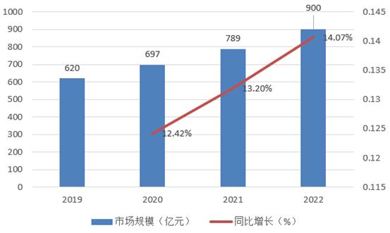 图表:2020-2022年我国制药机械及设备行业市场规模