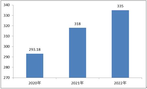 图表:2020-2022年中国茶叶产量(单位:万吨)