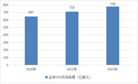 图表:2020-2022年全球CRO市场规模(亿美元)