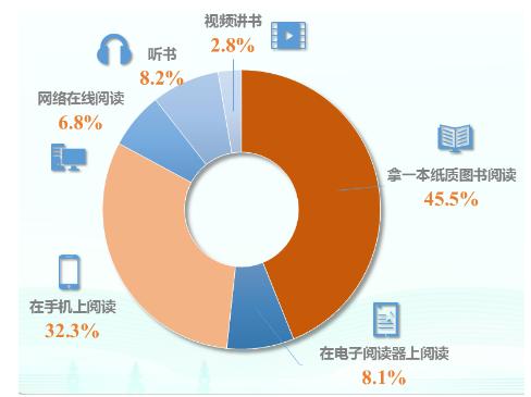 从成年国民倾向的阅读形式来看,2022年,有45.5%的成年国民倾向于“拿一本纸质图书阅读”,与2021年的45.6%总体持平;有32.3%的成年国民倾向于“在手机上阅读”;有8.1%的成年国民倾向于“在电子阅读器上阅读”;有6.8%的成年国民倾向于“网络在线阅读”;有8.2%的成年国民倾向于“听书”;有2.8%的成年国民倾向于“视频讲书”。 从成年国民对个人阅读数量的评价来看,2022年,有3.3%的国民认为自己的阅读数量很多,有11.2%的国民认为自己的阅读数量比较多,有55.0%的国民认为自己的阅读数量一般,有30.5%的国民认为自己的阅读数量很少或比较少。