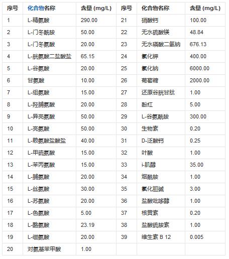 RPMI-1640培养基成分 (配制时添加碳酸氢钠2000mg/L)
