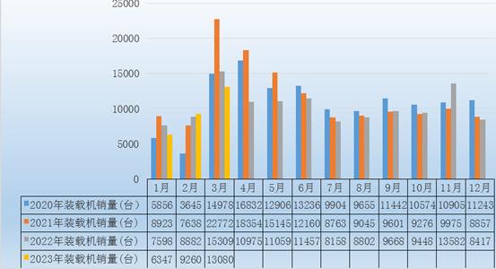 图表:2020-2023年3月装载机销售量