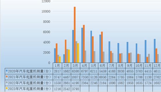 图表:2020-2023年3月汽车起重机销售量