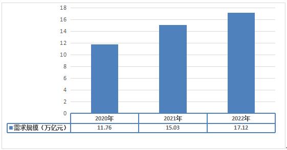 中国化工产业继续着从化工大国迈向化工强国的新征程,绿色化、高端化以及差异化的发展将创造更多细分领域的新机遇,在绿色、安全、智慧和创新的目标指引下,消费升级与供给侧结构性改革,推动着石油化工行业发展的深度变革,2022年中国石油化工行业需求规模达到17.12亿元,同比增长13.91%。