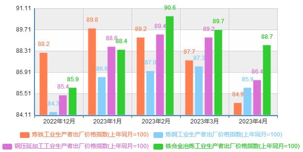 炼铁工业生产者出厂价格指数(上年同月=100)