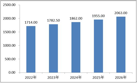 图表:2022-2026年全球有机肥料行业市场规模(单位:亿美元)