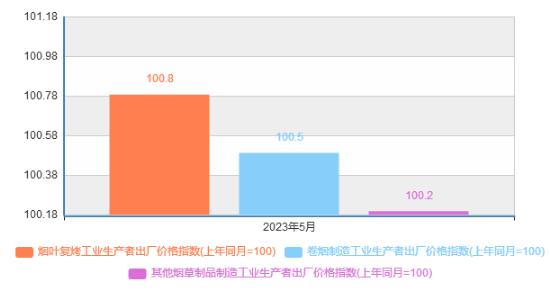 图表:卷烟制造工业生产者出厂价格指数(上年同月=100)