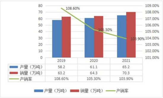2019-2021年我国皮肤病药物行业长期处于销量小幅高于产量的供需格局,部分高端产品我国国内企业难以满足消费需求,在高端产品市场我国主要采取想国外企业进口方式进行填补需求缺口。