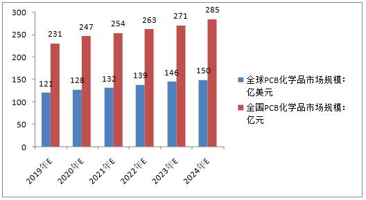 图表:全球及全国PCB用电子化学品行业预测