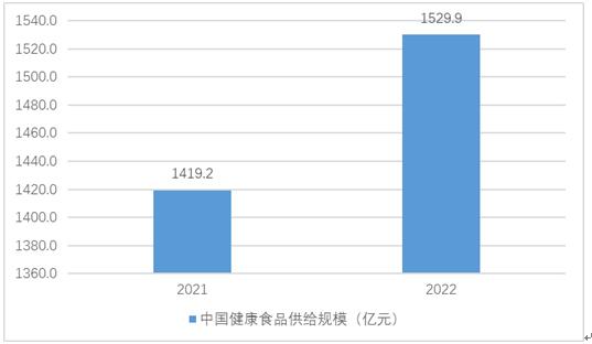 中国健康食品市场在近年来呈现出高速增长的趋势,供给规模不断扩大。根据数据显示,从2021年的1419亿元增长到2022年的1529亿元。这表明消费者对健康食品的需求持续上升,并且政策层面也在积极支持和推动其发展。