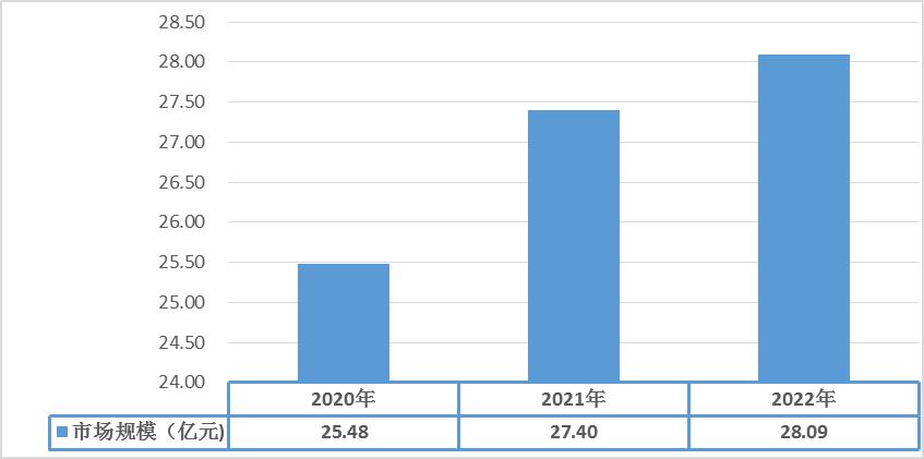 在轻骨料混凝土应用领域不断增长的驱动下,2020-2022年中国轻骨料混凝土行业市场规模呈现逐年增长趋势,2022年下游行业发展缓慢,2022年轻骨料混凝土增速下降,市场规模达28.09亿元,同比增长2.5%。