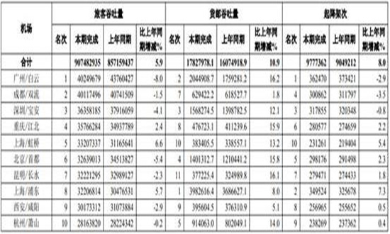 五、重点机场吞吐量