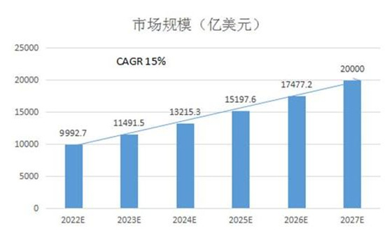 未来随着各国政府政策扶持、国际贸易持续发展、新兴经济体潜在市场近一步得到有力挖掘以及全球物流体系进一步得到完善等有利因素驱动下,预计2022-2027年全球冷链物流行业市场规模有望以15%的年复合增长率持续增长,预计到2027年全球行业市场规模有望增长至20000亿美元。
