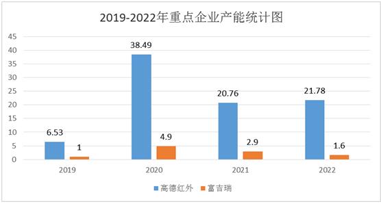 图表:2019-2022年重点企业产能情况统计(单位:万台)