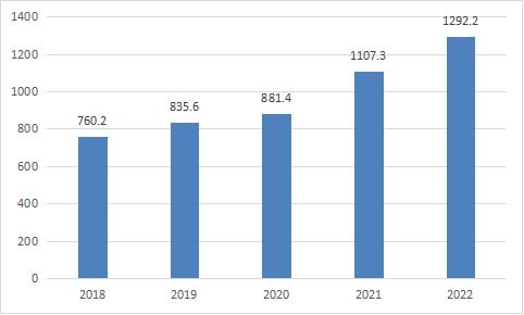 根据中研研究院《2023-2028年中国电子信息新材料行业市场全面分析及发展调研报告》分析得知,根据企业公开资料显示,2018-2022年期间我国电子信息新材料行业销量规模情况如下图所示。5年间,行业销量规模受市场需求增长带动下呈现出持续增长态势,截至2022年底,我国电子信息新材料行业销量达到了1292.2万吨。