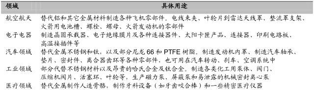 图表:国内PEEK应用领域及具体用途