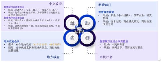 为了鼓励第四次工业革命技术的相关企业将智慧城市作为发展方向,政府创新设计了一个包含各部门、地方政府、企业和市民的多方管理机制。特别是韩国正在扩大智慧城市融合联盟的规模,从而增强私有企业建设智慧城市的参与度,此外,韩国计划推出“智慧城市生活实验室”来积累实验室资源并创造协同效应。