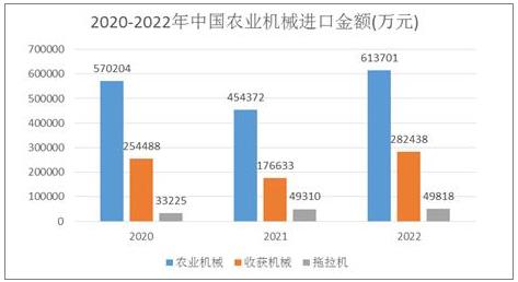 从当前情况来看,我国农业机械的产品结构还不够合理,低端产品占据多数市场,高端产品大多依赖进口。根据2020-2022年的进口数据,未来几年,我国农业机械的进口金额会进一步增长的空间。