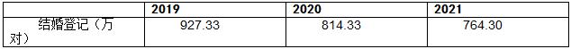 图表:2019-2021年中国结婚登记数量