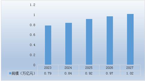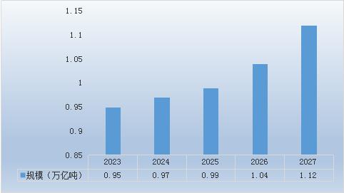 图表:2023-2027年我国钢结构产量预测(亿吨)