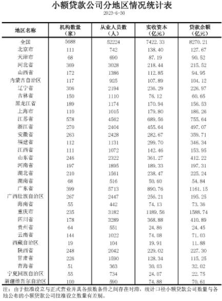 2023二季度小额贷款公司统计数据报告