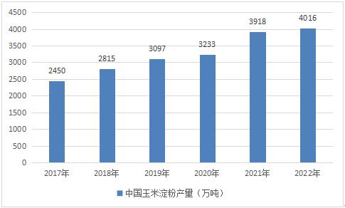根据中国淀粉工业协会数据,2020年中国玉米淀粉产量已达3233万吨,2021年中国玉米淀粉产量达3918万吨,2022年中国玉米淀粉保持低速增长,达到4016万吨。