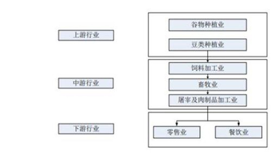 肉牛养殖行业的上游行业的上游为谷物、豆类种植业,下游为餐饮业及零售业。